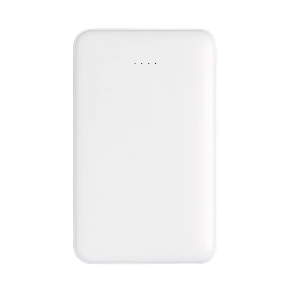 Compacte en platte 5.000 mAh powerbank gemaakt van ABS die gemakkelijk overal mee naartoe te nemen is. Met de 3 in 1 ge ntegreerde TPE-kabels is de powerbank compatibel met alle mobiele apparaten die op de markt zijn en direct klaar voor gebruik. Als deze volledig is opgeladen, beschikt u over voldoende energie om uw mobiele telefoon maximaal drie keer op te laden. De powerbank bevat een 5.000 mAh grade-A high density lithiumpolymeerbatterij met een lange levensduur. De lichtindicators geven het resterende energieniveau aan, zodat u altijd weet wanneer u het apparaat opnieuw moet opladen. Input 5V/2A Output 5V/2A.