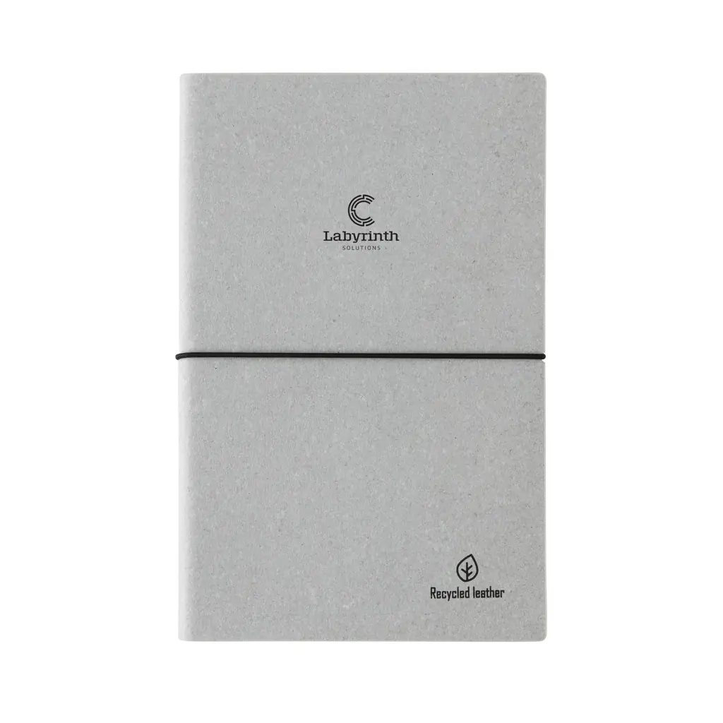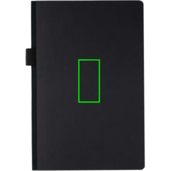 Dit FSC® deluxe notitieboek met harde kaft heeft een FSC-gecertificeerde papieren omslag met zwarte accenten, bijpassende elastische pennenlus en lint. Aan de achterkant vind je een vakje om je losse notities in op te bergen. 80 vellen/160 pagina’s crème, FSC®-gecertificeerd gelinieerd papier.