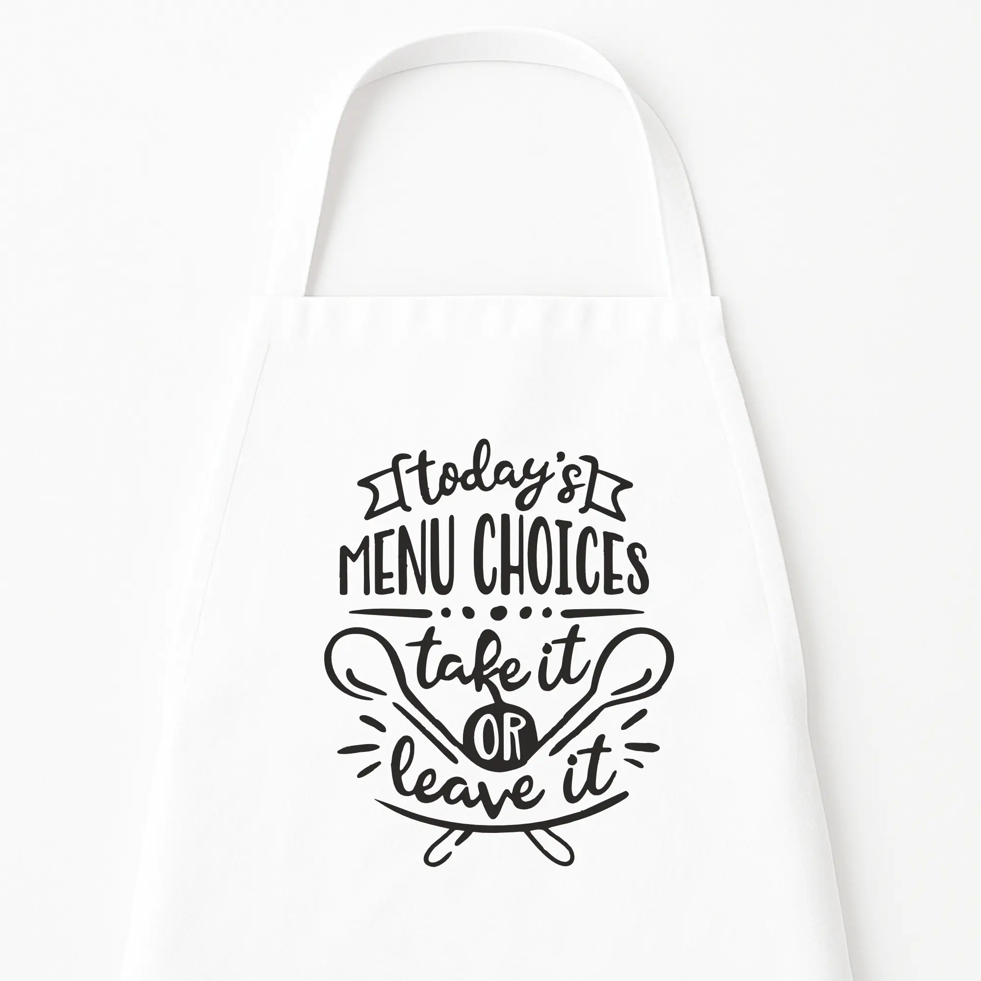 Keukenschort “Today’s Menu Choices: Take it or leave it” | Grappig Cadeau | Origineel Kerstcadeau